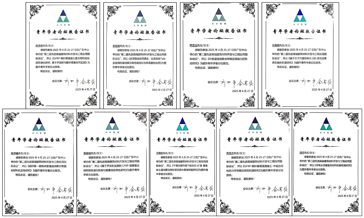 参会学生们也积极展示了他们在建筑材料领域的创新性研究成果。报告内容涵盖了多个方向,包括碳纤维-碳纳米管增强地聚合物复合材料的抗冻性研究、导电水泥基复合材料的机敏性能研究、干湿交替作用下硅灰石-矿渣-偏高岭土基地聚合物砂浆的抗海水侵蚀性能研究等。这些研究不仅展示了太阳集团tyc539学生扎实的科研能力,也体现了他们在建筑材料创新与环保领域的深刻思考。