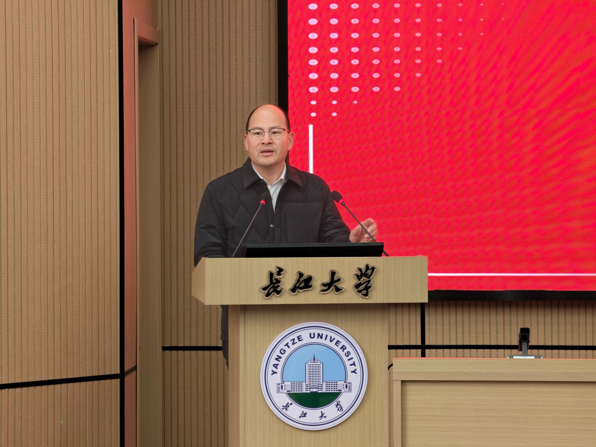 在大会上院长肖桃李作2025年工作总结暨2026年工作动员报告。他系统梳理并分析了学院年度发展绩效,结合学科特色与行业发展需求精准梳理潜在增长点,明确了各分管领导2026年的核心工作目标,并详细解读了新一年度绩效分配方案,激励全体教职工以目标为导向、以创新为动力,凝心聚力共同书写学院高质量发展新篇章。