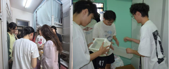 此次活动由学院党委副书记周洁如、辅导员胡冰恒老师带队,带领组织部和宣传部的同学们前往宿舍楼开展传递工作。从前期对物品的细致整理,到上门交接时的耐心嘱托,每一件物品都凝聚着毕业学长学姐对学弟学妹的殷切期许,每一次双手交接都成为不同届次城建学子精神联结的纽带——让寝室不仅是居住空间,更成为“届届连心”的传承阵地,让城建情怀在宿舍里自然延续。